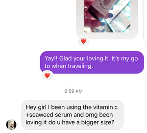 Get ready to shine like the sun with our Vitamin C + Seaweed face serum! Infused with sun nutrients, this serum is packed with vitamin c and seaweed protein to give your skin a radiant and healthy glow. Say goodbye to dullness and hello to a bright and nourished complexion.